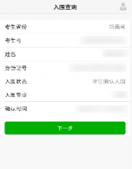 第一步:请核对本人信息,确认无误点击下一步进入录取通知书邮寄地址确认。