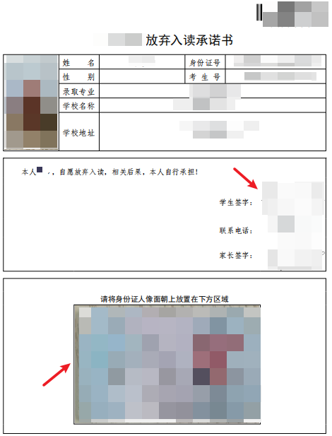 第三步:查看本人放弃入读承诺书(承诺书上相片、身份证、签名、家长电话等信息会自动生成),确认无误后点击确认完成提交,则完成放弃入读操作流程。